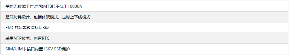 | 超低功耗设计,包括休眠模式、定时上下线模式 | |||