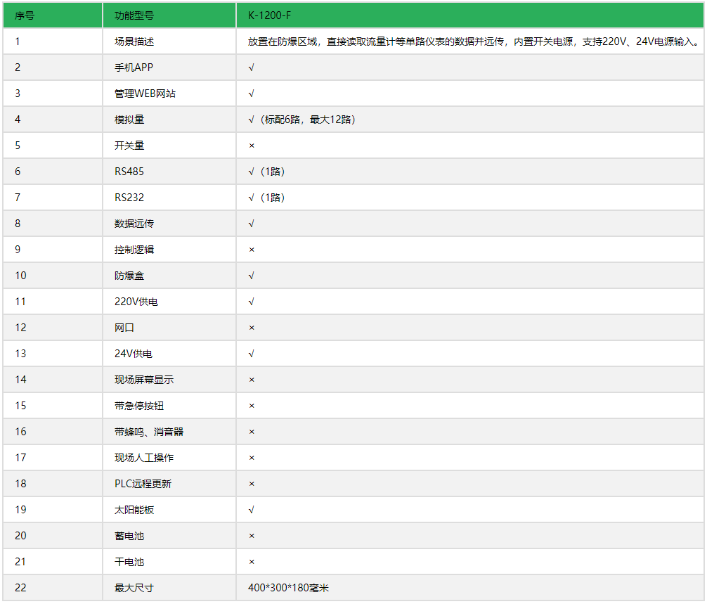 | 1 | 场景描述 | 放置在防爆区域,直接读取流量计等单路仪表的数据并远传,内置开关电源,支持220V、24V电源输入。 |