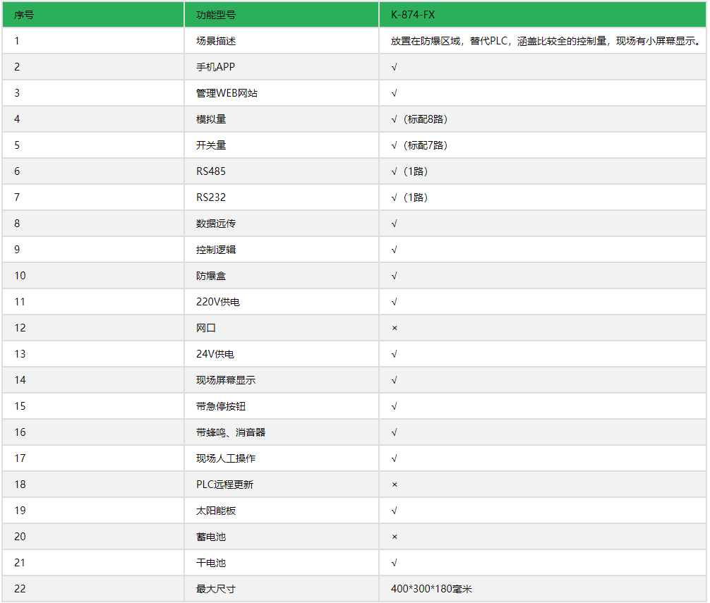 | 1 | 场景描述 | 放置在防爆区域,替代PLC,涵盖比较全的控制量,现场有小屏幕显示。 |